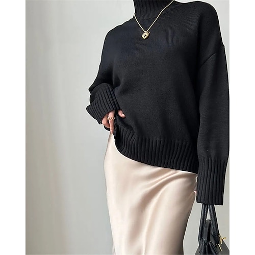 Per donna Felpa Maglione Elegante Vintage Moda Tinta unica Dolcevita Lavorato a maglia Manica Lunga Top Regolari Maglia All'aperto Quotidiano Ferie Nero Rosa Autunno Inverno