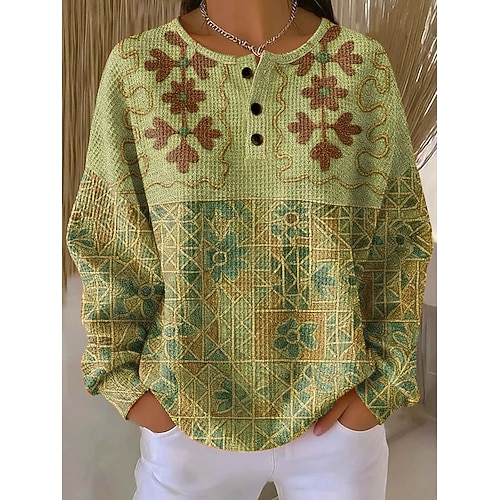 Per donna Felpa Pullover Floreale Grafico Paisley Vintage Casual Manica Lunga Girocollo Top Regolari Streetwear Abbigliamento Quotidiano Casuale Bottoni Stampato Blu Nero Verde Caffè Primavera