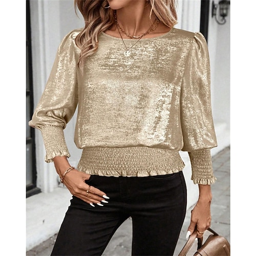 Per donna Blusa Top Eleganti Tinta unica Semplice Elegante Vintage Signore Manica Lunga Girocollo Top Regolari Quotidiano Lavoro Uscire Arricciato Patchwork Blu Nero Bianco Rosa Oro Estate Primavera