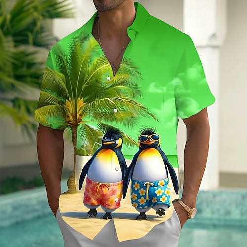Per uomo Cartoni animati Albero di Cocco Pinguino Camicia hawaiana estiva Camicia con Bottoni Camicia Aloha Manica Corta Hawaiano Divertente Abbigliamento mare Estate Primavera Collo ripiegato Stampa