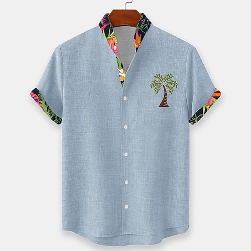 Per uomo Palma di Cocco Camicia di lino Camicia casual Camicia hawaiana estiva Manica Corta Hawaiano Resort Vacanza Casual Casuale Estate Primavera Collo ripiegato Cardigan con Bottoni Rosa Blu Verde