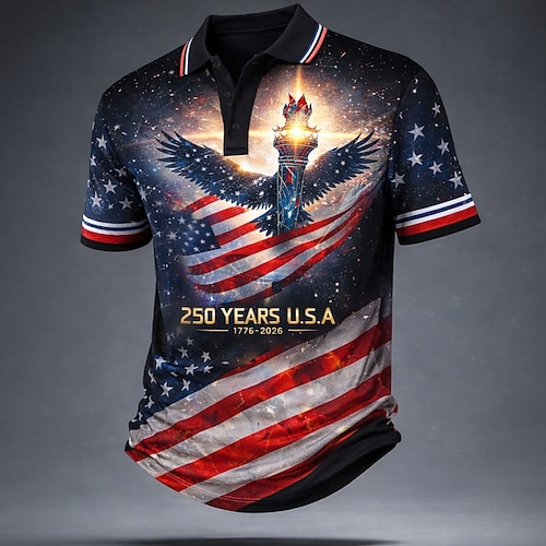 Herren Amerikanische Flagge Poloshirts Kurzarm Polo-Shirts Revers Lässig Athleisure Alltagskleidung Festival-Outfit 3D-Druck Knöpfe Sommer Frühling Blau Schwarz Rote