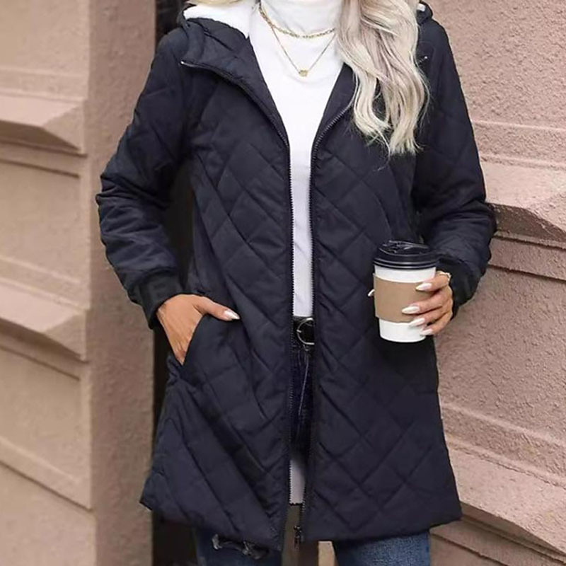 Women's Winter Coat Coat Parka Warm Comfortable Zipper Pocket Elegant Fashion Classic Modern Solid Color Outdoor Vacation Home Office / Career Long Hooded Regular Fit Long Sleeve Outerwear Black Fall