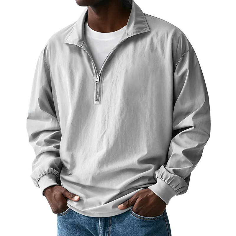 Men's Polo Shirts Quarter Zip Polo Daily Wear Date Quarter Zip Long Sleeve Fashion Basic Plain Zipper Spring Fall Regular Fit Blue Black White Red Purple Green Polo Shirts