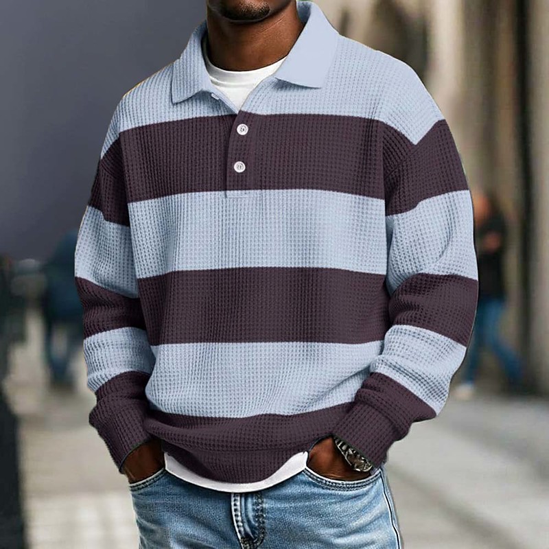 Men's Horizontal Stripes Waffle Polo Shirts Rugby Polo Textured Long Sleeve Polo Shirts Lapel Sportswear Casual School Athleisure Daily Wear 3D Print Spring Fall Winter Blue Purple Green