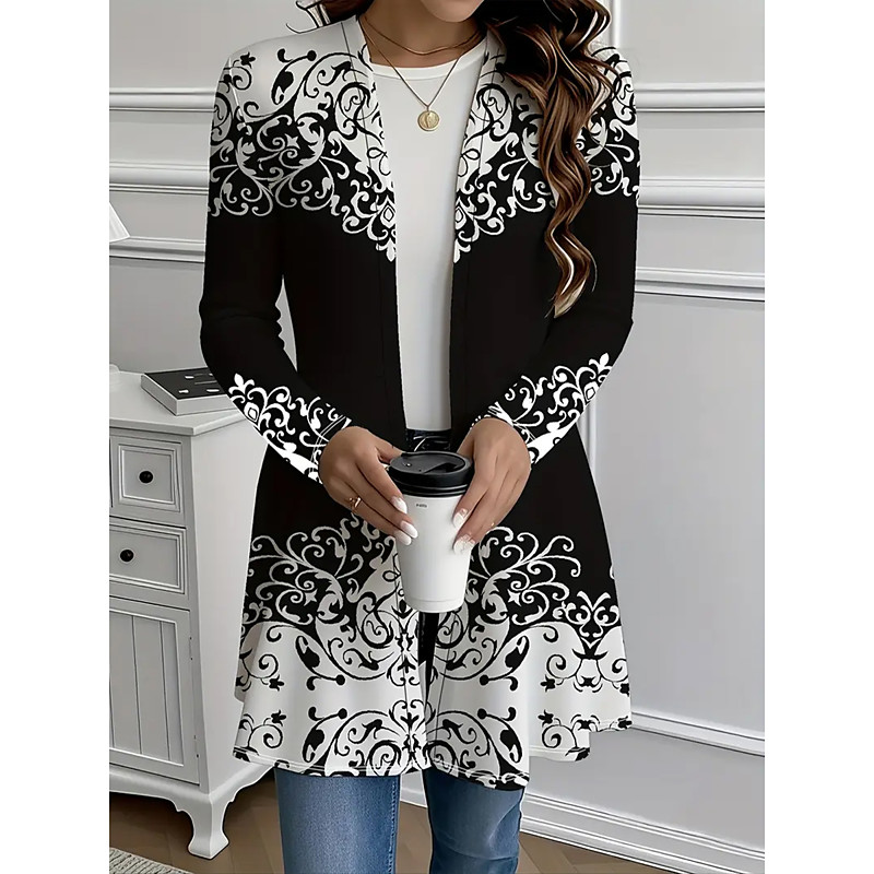 Women's Winter Coat Trench Coat Lightweight Comfortable Print Open Front Vintage Fashion Casual Boho Vintage Geometric Vacation Casual Long Collarless Regular Fit Long Sleeve Outerwear Black Beige