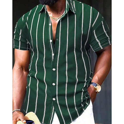 Per uomo Camicia Camicia Estiva Camicia casual Camicia da Spiaggia Camicia con Bottoni Nero Verde chiaro Blu reale Verde Kaki Manica Corta A righe Bavero Vacanza Camicia hawaiana Abbigliamento