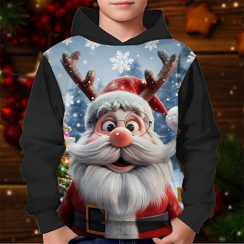 Christmas Boys' 3D Santa Claus Hoodie Long Sleeve Spring Fall Fashion Streetwear Kids 4-12 Years Hooded Outdoor Casual Daily Regular Fit