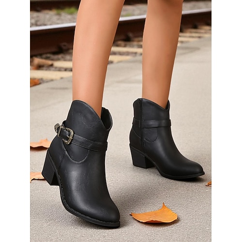 stivaletti da donna con cinturino con fibbia marrone – stivaletti con tacco a blocco in stile western e cerniera laterale per outfit casual e country autunnali e invernali