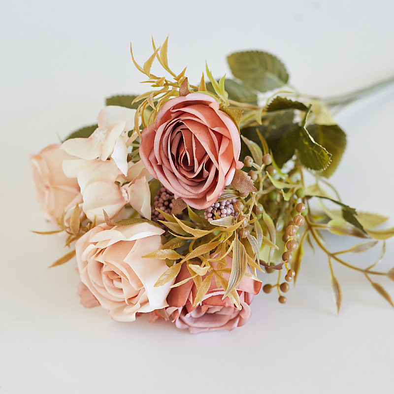 Simulated Flower 6 Forks Smoke And Rain Rose Home Decoration Artificial Flower Rose Silk Flower European Style Color Scheme Hotel Dining Table Flower Arrangement