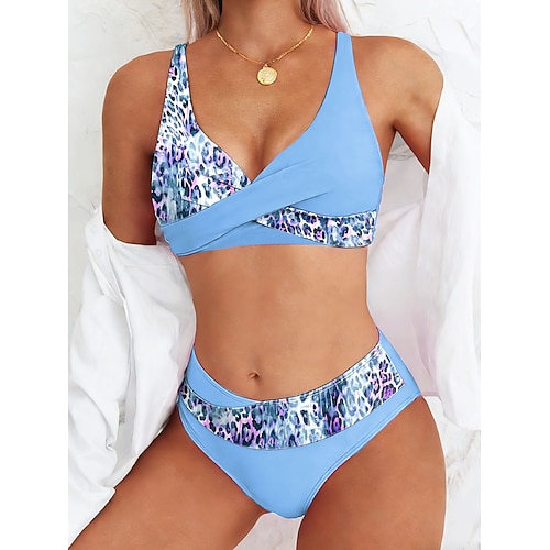 Costume da bagno due pezzi bikini da donna Alta vita senza schienale Vacanza Abbigliamento da spiaggia Grafica Tropicale V Neck Senza maniche