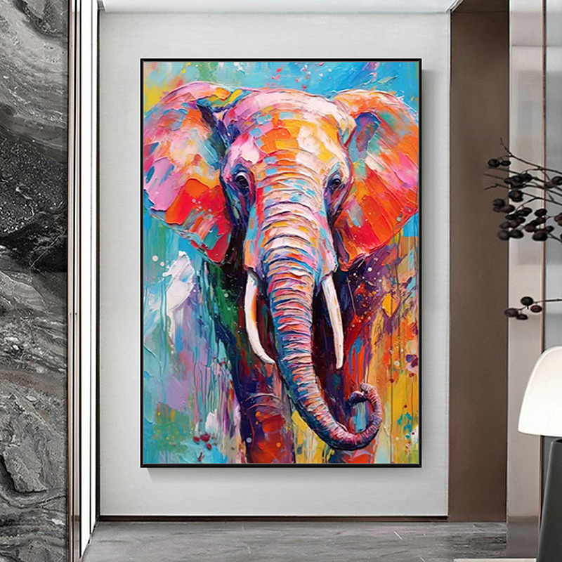 Mintura Handmade Elephant Animal Oil Paintings On Canvas Wall Art Decoration Modern Abstract Picture For Home Decor Rolled Frameless Unstretched Painting