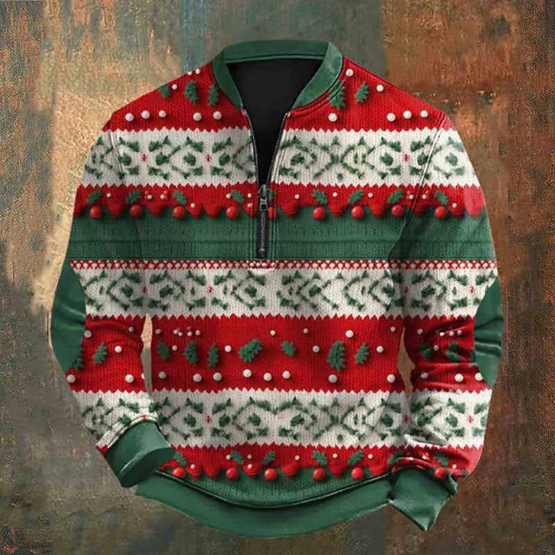 Christmas Men's Snowflake Printing Quarter Zip Sweatshirt Sweatshirts Long Sleeve Sweatshirt Half Zip Vintage Retro Print Holiday Going out Print Fall Winter