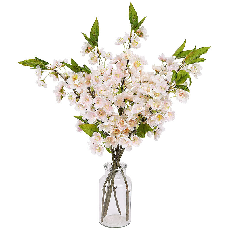 4Pcs 20in/50.8cm Artificial White Pink Cherry Blossom Flowers Artificial Peach Blossom Flower Silk Cherry Blossom Branches with Leaves White Plum Blossom Flowers for Wedding Home Indoor Outdoor Decor