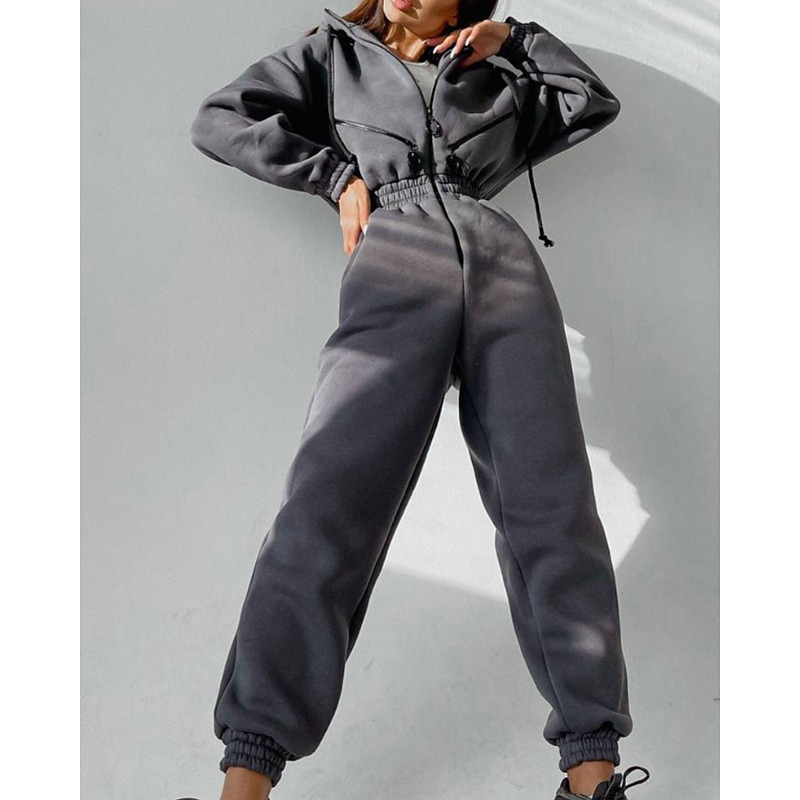 Women's Normal Jumpsuit Streetwear Color Block Long Sleeve Hooded Patchwork Zipper Street Daily Regular Fit White Pink Blue Fall