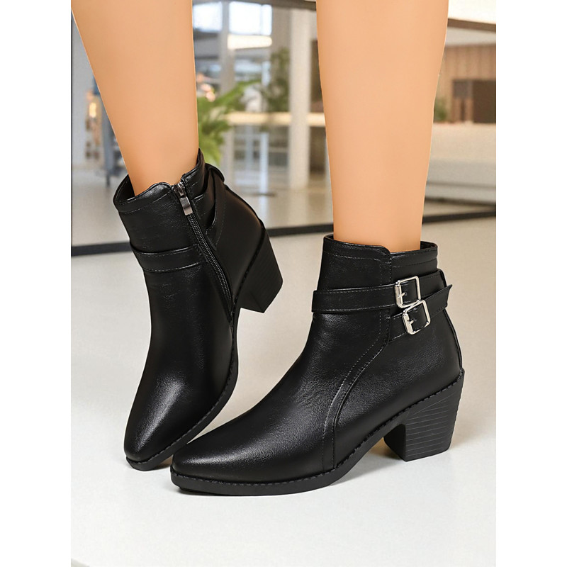 Women's Brown Faux Leather Ankle Boots – Stylish Buckle Strap with Zipper, Block Heel, Office and Casual Wear