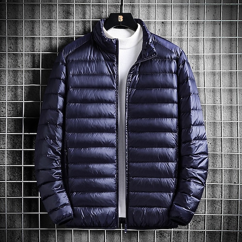 Herren Wintermantel Daunenjacke Gefütterte Jacke Tasche Polyester Urlaub Alltagskleidung Date Regulär Mode Lässig Bequem Thermowarm Winter Einfarbig Wein Schwarz Marinenblau Blau Pufferjacke