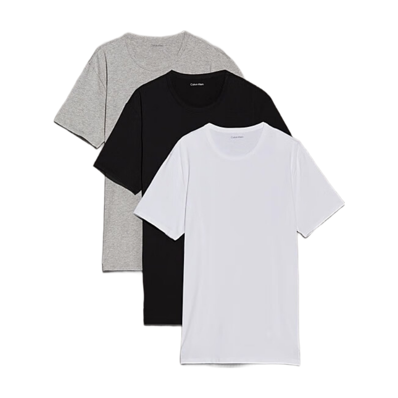 Calvin Klein 3 Pack T-Shirt Col Rond - Noir, Blanc, Gris Taille L