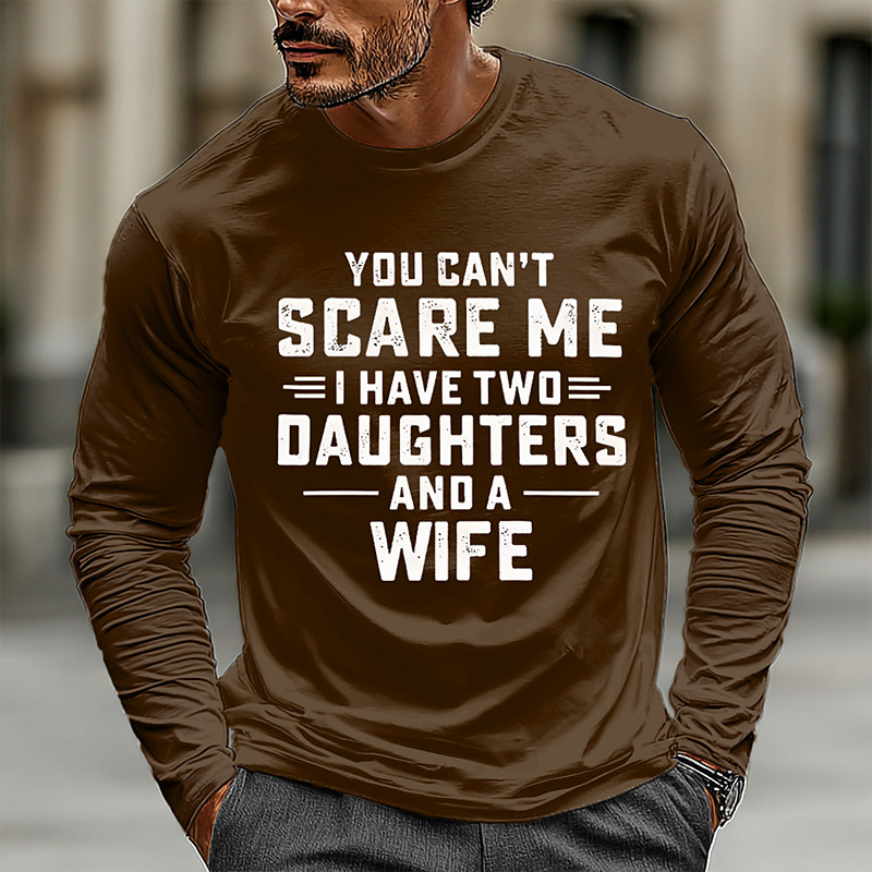 You Can'T Scare Me I Have Two Daughters And A Wife Men's Funny Slang T Shirt Long Sleeve T shirt 3D Print Crew Neck Shirt Fashion Daily Basic Street Casual Daily Blue Black Brown Summer Spring Clothin