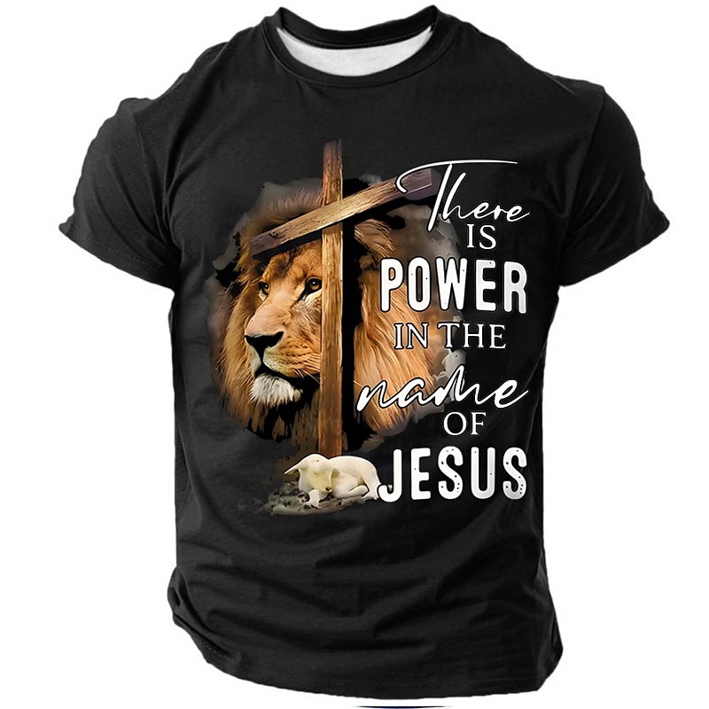 Mens Christian T Shirt There Is Power In The Name Of Jesus Lion And Lamb Cross Graphic Tees Faith Religious Short Sleeve Tops Clothing Apparel S M L XL XXL XXXL