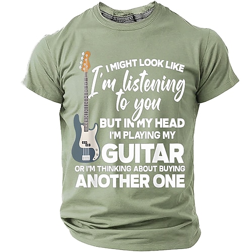 Herren-T-Shirt mit Bass-Grafik: „Ich höre zu, aber in Gedanken spiele ich Gitarre oder kaufe mir eine neue." – Lustiges, sarkastisches T-Shirt mit Bass-Motiv, normale Passform, Geschenk für