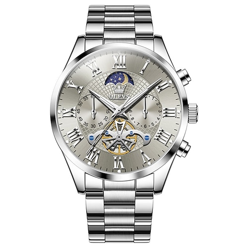 il nuovo orologio da uomo olevs business con calendario luminoso, tre piccole lancette e indicatore delle fasi lunari, orologio al quarzo multifunzionale con cinturino in acciaio massiccio, orologio