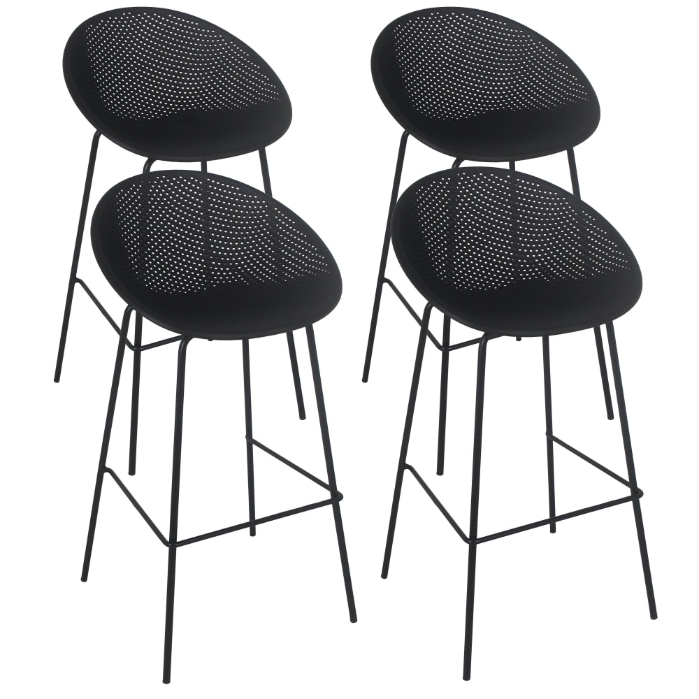 Set di 4 sedie da terrazza alte in plastica blu anatra