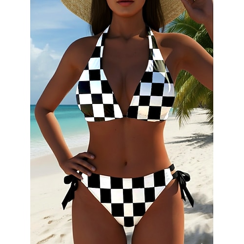 Damen Bikini 2-teiliges Badeanzug Cheeky Slim Rückenfrei Urlaub Strandbekleidung Grafisch Gestreift V-Ausschnitt Ärmellos Badeanzüge