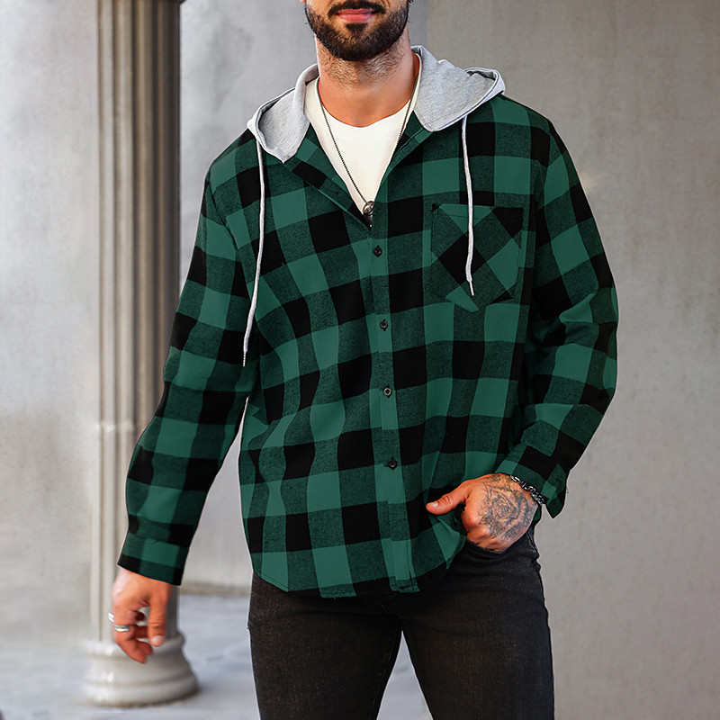 Men's Shirt Flannel Shirt Overshirt Lattice Outdoor Street White Red Green Long Sleeve Hoodie Spring Fall Clothing Apparel