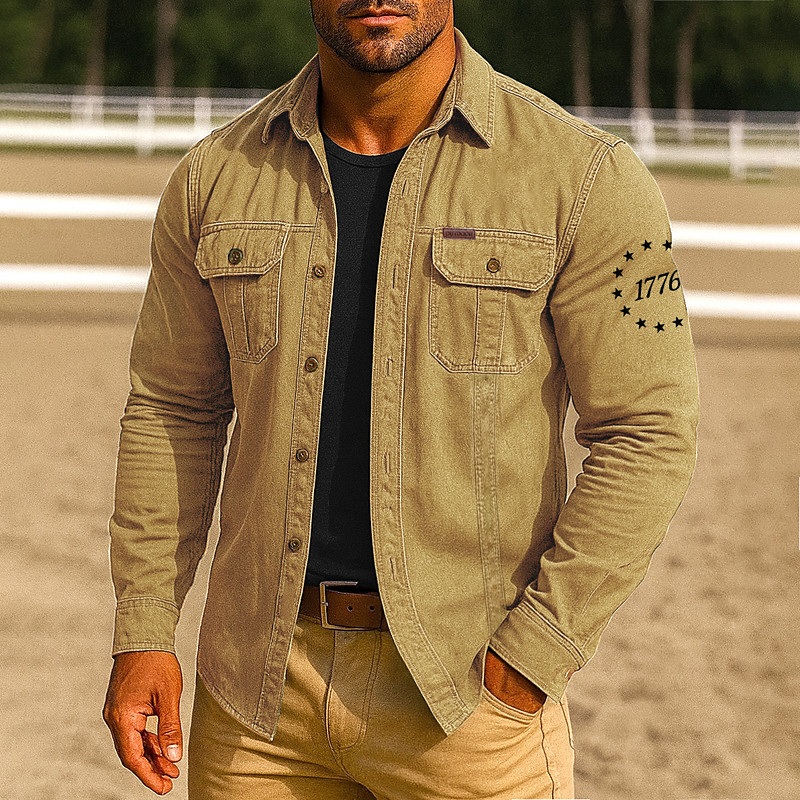 Men's Patriotic 1776 Work Shirt Western Shirt Cargo Shirt Long Sleeve Tactical Vintage Retro Sports Outdoor WorkWear Spring Fall Turndown Front Two Pockets Button Up Shirts Black Red Blue Orange Khaki