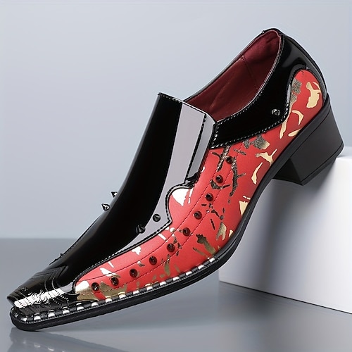 scarpe slip-on da uomo in similpelle – colore giallo e nero con dettagli a spillo, calzature alla moda per audaci celebrazioni nuziali e occasioni speciali