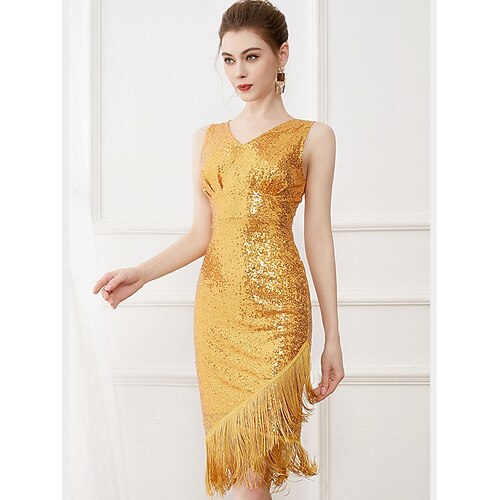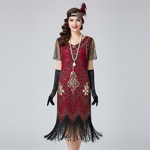 Anni Ruggenti Anni 1920 Lunghezza al ginocchio Abito Flapper Il grande Gatsby Ragazza Flapper Paillettes Frange Scollo a V Costume Per donna Natale Carnevale Festa serale Mascherata Festa a tema retrò