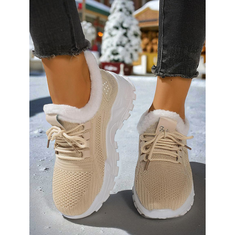 Women's Red Fleece-Lined Sports Sneakers - Warm, Breathable Running Shoes for Winter, Christmas, Travel and Casual Wear