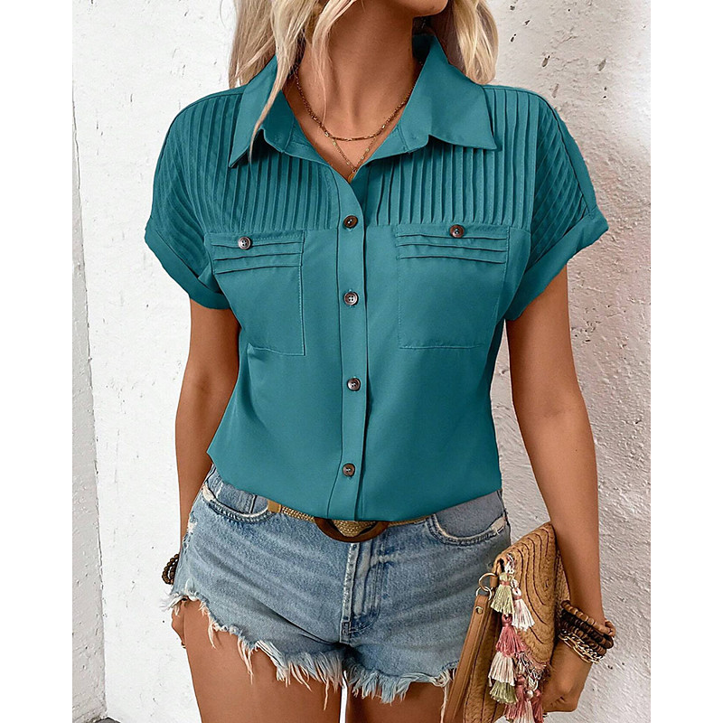 Women's Shirt Blouse Plain Elegant Stylish Short Sleeve Shirt Collar Regular Tops Daily Work Holiday Ruched Buttons Light Green Pink Purple Orange Green Summer Spring Fall