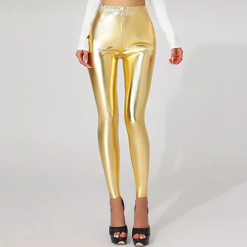 Retrò Vintage Anni '80 Metallico Lucido Gonna Disco Pieghettato Tinta unica Costume Per donna Carnevale Performance Balli di fine anno Club Adulti Gonna