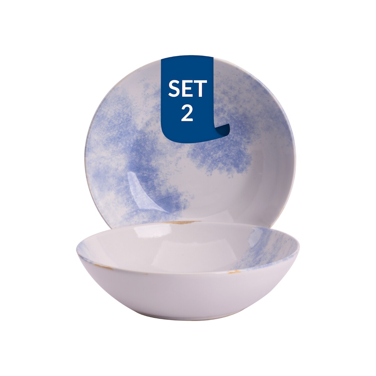 James Cooke Clouded Charm Müsli Schalen 2er-Set Steingut Ø 17 cm blau weiß, braun umrandet