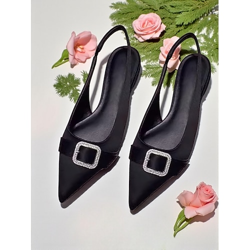 ballerine da donna in raso rosa con cinturino posteriore e fibbia in strass, eleganti scarpe a punta con tacco basso per cocktail party eventi serali