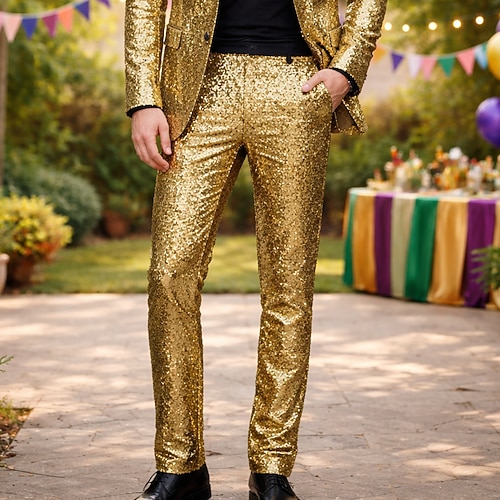 Mardi Gras 2026 Disko 1980er Hose Disco Pailletten Kostüm Herren Karnevalskostüm Maskerade Club Party Leistung Erwachsene Hose Ganzjahres