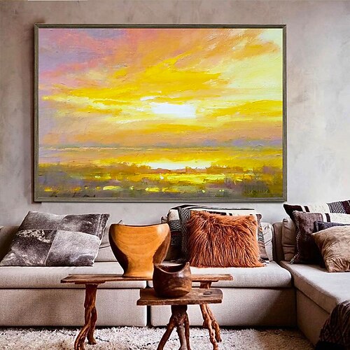 Handgefertigtes Ölgemälde auf Leinwand, Wandkunst, Dekoration, moderne abstrakte Meer-Sonnenaufgang-Landschaft für Wohnkultur, gerolltes, rahmenloses, ungedehntes Gemälde