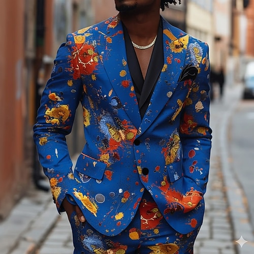 Herren Farbblock Blazerjacke Mantel Mode Bequem Atmungsaktiv Lässig Täglich Streetwear Lässig Tasche 3D-Druck Knöpfe Ganzjahres Fallendes Revers Langarm Blau Schwarz Weiß