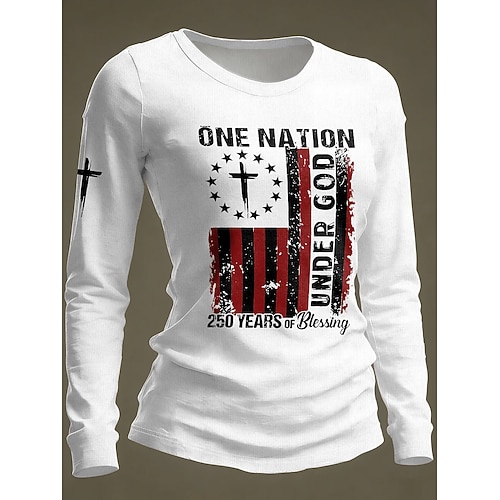 Giorno dell'Indipendenza Maglietta Patriottica da Donna Stampa Grafica Bandiera Moda Stile Classico Manica Lunga Collo Rotondo Regular Tops Giornaliero Weekend Blu Bianco Estate Primavera Autunno