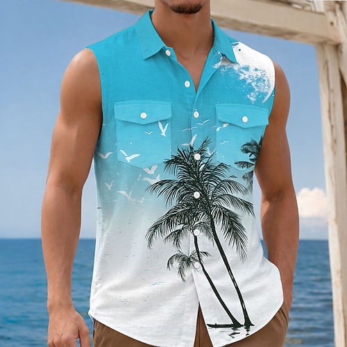 Per uomo Albero di Cocco Colore sfumato Piante Tropicali Camicia Camicia hawaiana estiva Camicia Aloha Senza Maniche Resort Vacanza al Mare Estate Primavera Collo ripiegato Stampa 3D Due tasche