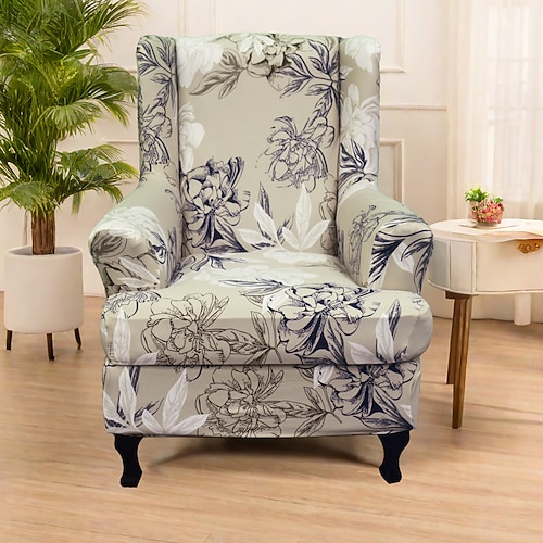 Copripoltrona con schienale alto, copripoltrona in poliestere con stampa geometrica a righe e motivi floreali, copripoltrona pieghevole alla moda, copripoltrona