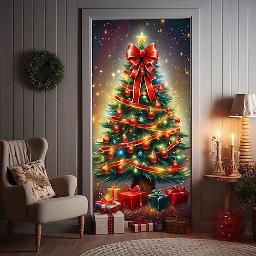 Copriporta natalizio, tende natalizie con design a forma di albero di Natale luminoso per ingresso, soggiorno, camera da letto, interni ed esterni, decorazioni stagionali per le feste