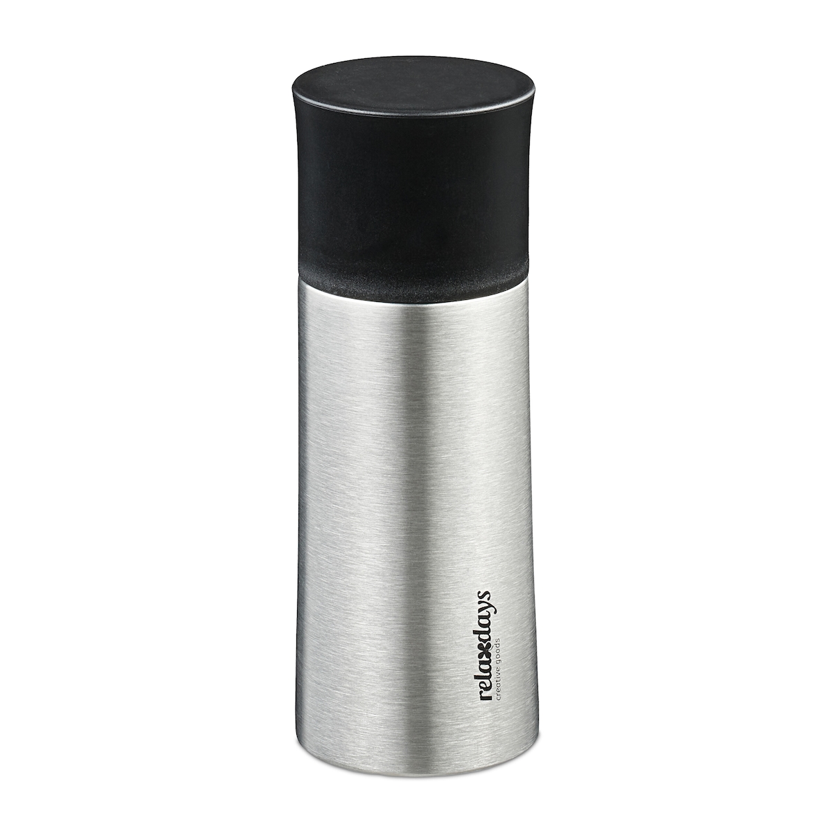 Relaxdays Trinkflasche Edelstahl, 300 ml, auslaufsicher, Kalt- & Heißgetränke, Vakuum Isolierflasche mit Becher, silber