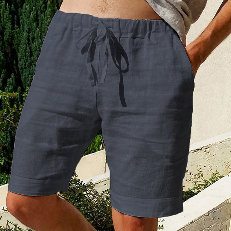 Men's Shorts Linen Shorts Summer Shorts Pocket Elastic Waist Drawstring Plain Outdoor Daily Going out Holiday Casual Black White