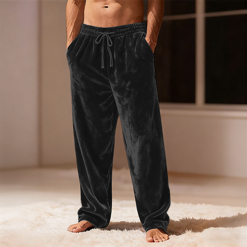 Men's Straight Leg Sweatpants Velvet Pants Drawstring Pocket Elastic Waist Plain Comfort Warm Daily Casual Blue Black Micro-elastic