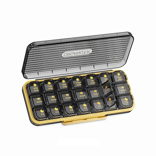 Portapillole settimanale da 7 giorni, organizer portatile per medicinali con 14/21 scomparti, portapillole da viaggio antiumidità per l'uso quotidiano, comodo contenitore per la conservazione dei