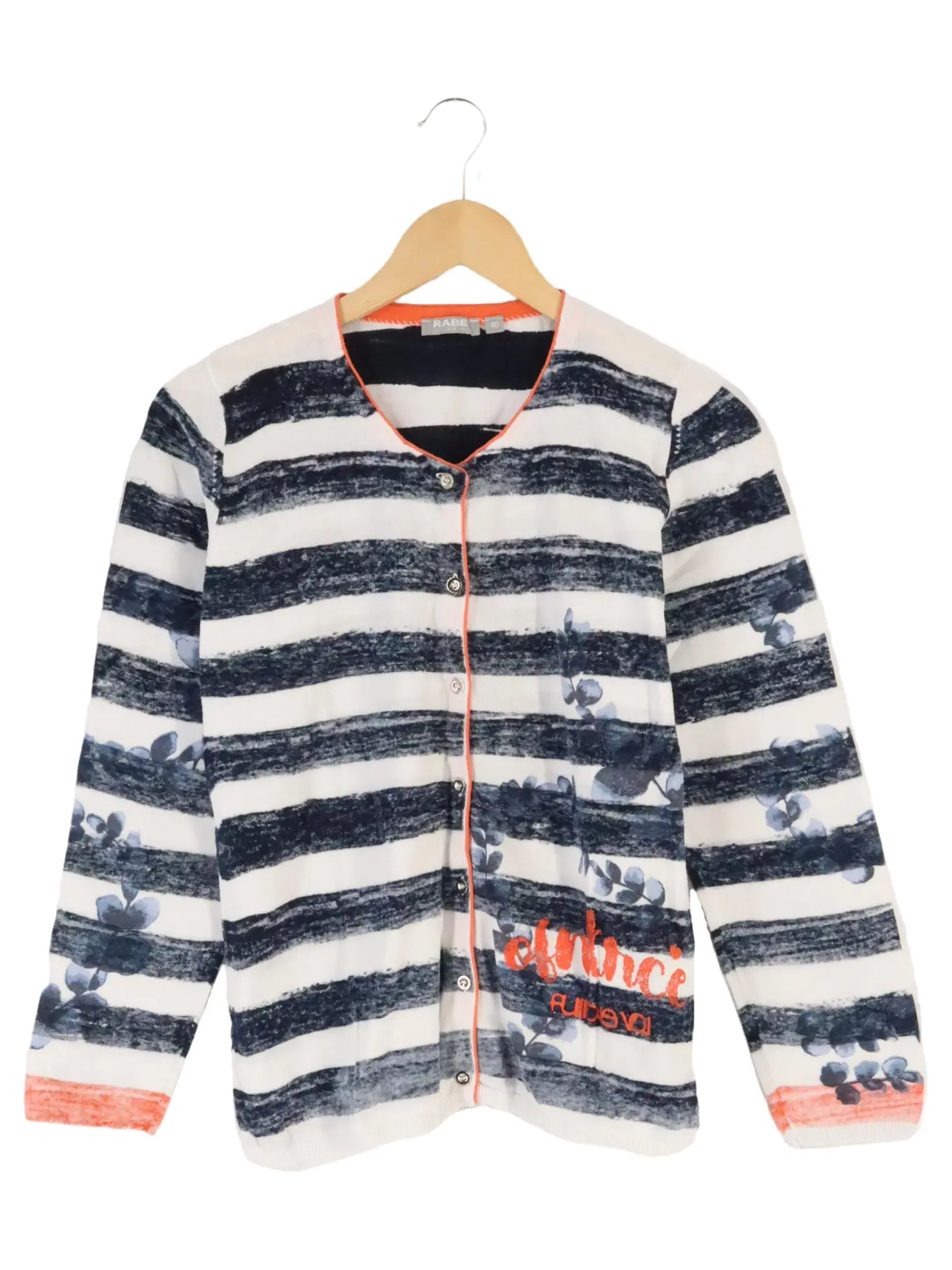 RABE Damen Strickjacke Blau Weiß Gestreift Baumwolle Gr. 40