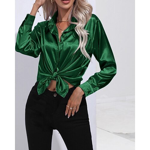 Per donna Camicia Elegant Elegante Raso/Satin Tinta unica Elegante Essenziale Casual Manica Lunga Colletto a Camicia Top Regolari Quotidiano Uscire Bottoni Bianco Giallo Blu Reale Viola chiaro Marrone